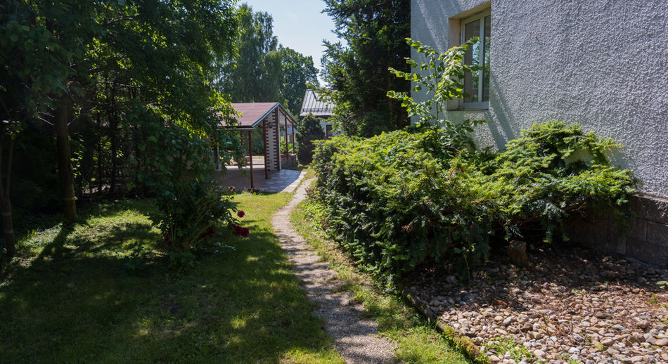 Exteriér: Objekt obklopuje okrasná zahrada s pergolou vhodnou pro grilování, venkovní bazén a jezírko, celodenně osluněná.